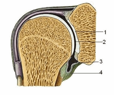 1. Sụn khớp 2. Ổ khớp 3. Bao hoạt dịch 4. Bao khớp
